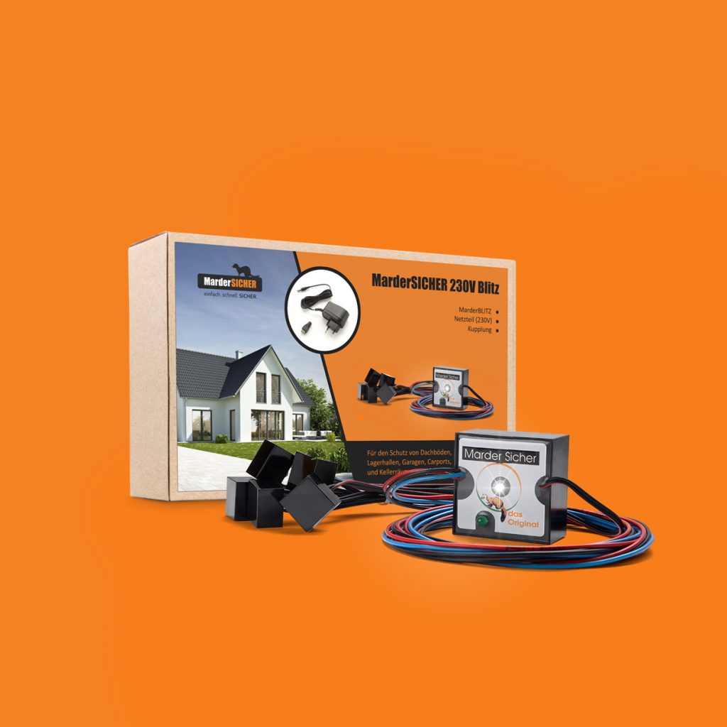 Die kompakte Lösung für den Schutz des Fahrzeugs oder des eigenen Zuhauses. Dieser Marderschreck wirkt mit einer Kombination aus Ultraschall- und Blitzlicht-Abwehr und lässt sich im Handumdrehen installieren. Die Ultraschall-Töne halten den Marder fern. Verirrt sich doch mal eines der Tiere in die Nähe, so wird es durch grelle Lichtblitze aus der Umgebung vertrieben. Dieses Paket beinhaltet bereits das passendes Netzteil für die einfache Inbetriebnahme über die Steckdose.