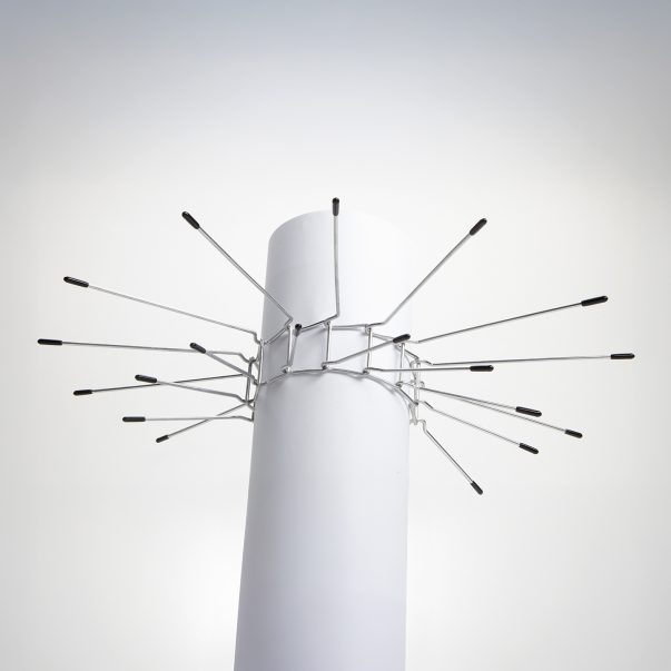 Der Abwehrgürtel mit Spikes für Fallrohre verhindert, dass Marder über Regenrohre aufs Dach gelangen – ein häufiger Zugangsweg zum Dach und dem Dachboden. Die breit angeordneten Drahtelemente bilden eine physische Barriere, die das Hochklettern unmöglich macht.