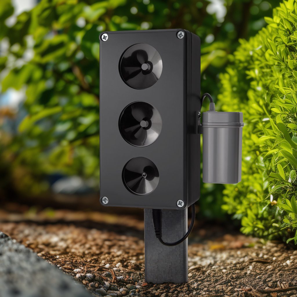 Drei leistungsstarke Lautsprecher erzeugen wechselnde Ultraschall-Frequenzen, die Marder effektiv vertreiben und dauerhaft fernhalten.